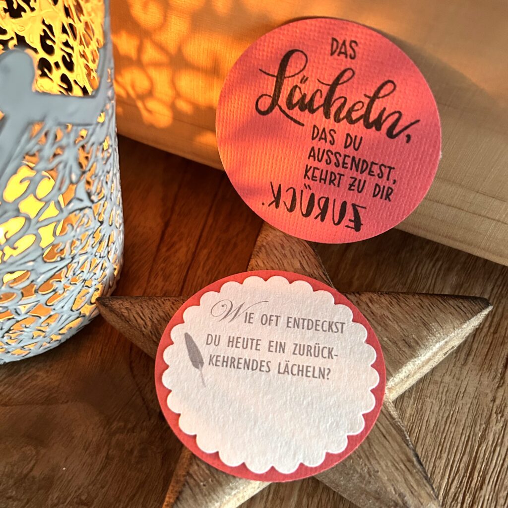 Der Hostentaschen-Adventskalender beinhaltet 24 Sprüche, die einen achtsam durch den Advent begleiten. Auf der Rückseite steht jeweils eine zum Spruch passende Frage, welche einen innehalten lässt und zum Nachdenken anregt.