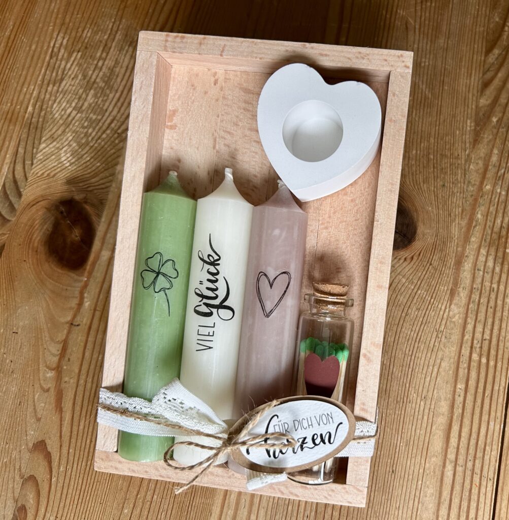 Dann passt die Dose „Meine Glücksmomente“ wunderbar ins Päckli dazu!